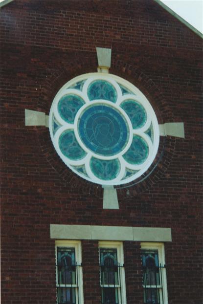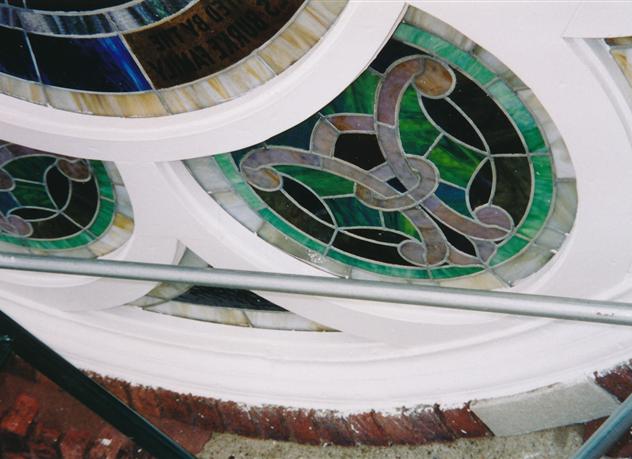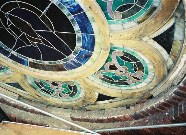 All stained glass restoration, millwork restoration and protective glazing replacement on this job was completed by Johnson County Stained Glass. Work finished up in 2001.